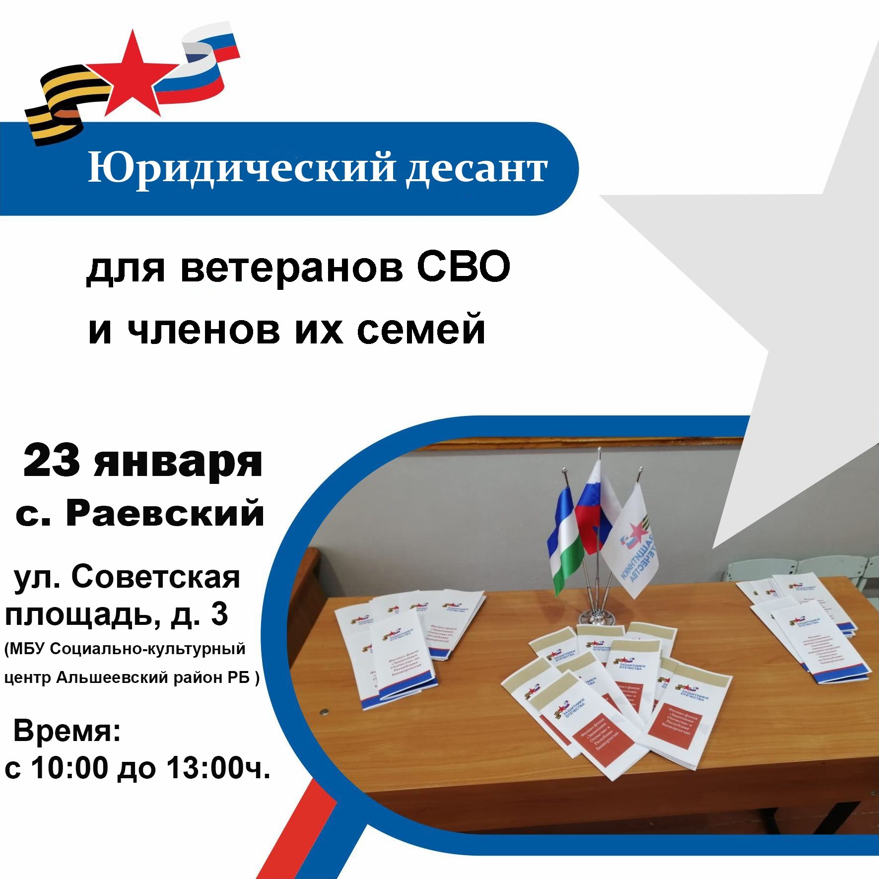 Место: Альшеевский район, с. Раевский, Советская площадь, д. 3 (социально-культурный центр с. Раевский).