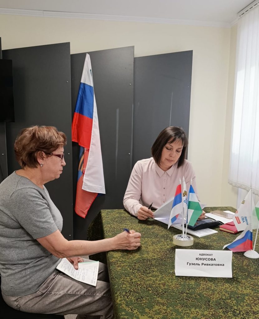 7 октября в Стерлитамаке на базе Центра поддержки участников специальной военной операции и их семей прошел прием граждан, который провела председатель местного отделения Ассоциации юристов России, руководитель городского филиала БРКА Гузель Юнусова.