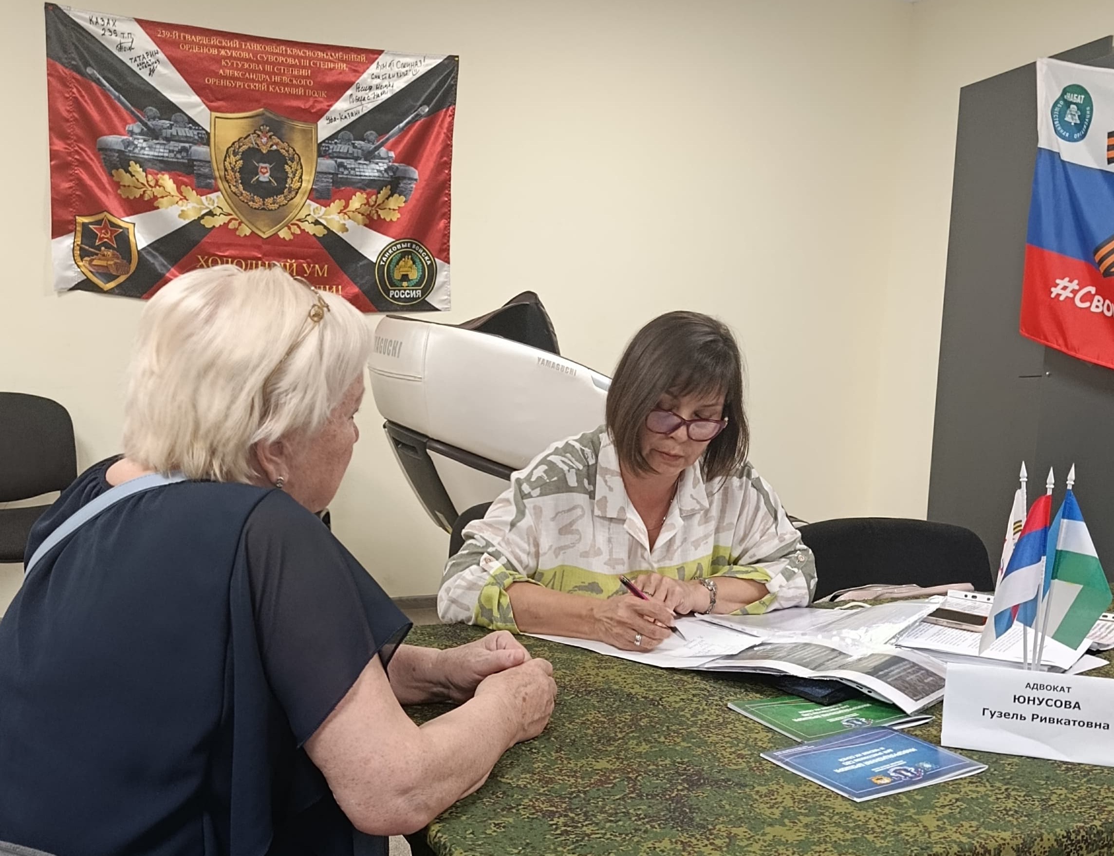 В Центре поддержки участников специальной военной операции и их семей 2 сентября провела прием председатель местного отделения Ассоциации юристов России в г. Стерлитамак Гузель Юнусова. Квалифицированную юридическую помощь получили 11 обратившихся.