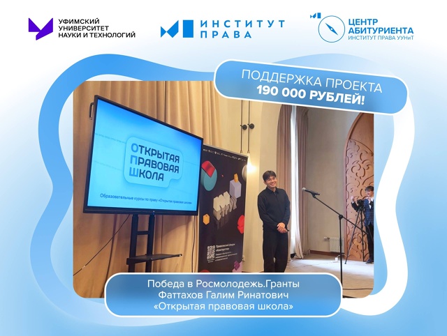 Студент Института права УУНиТ, член Совета молодых юристов Галим Фаттахов стал победителем всероссийского конкурса «Росмолодёжь.Гранты»!